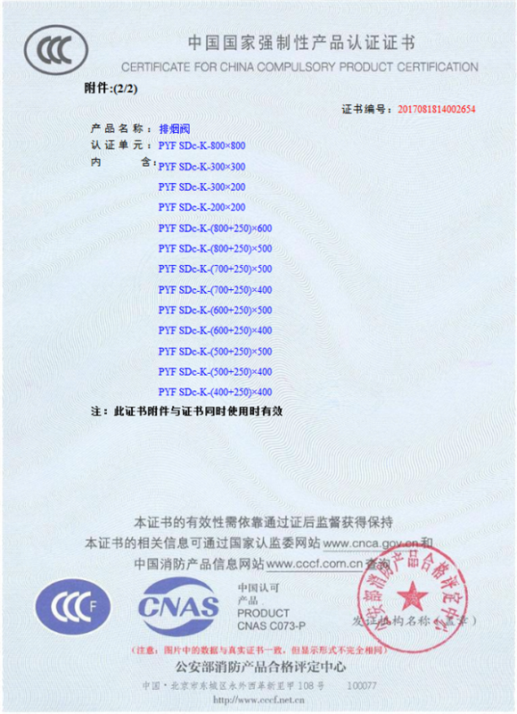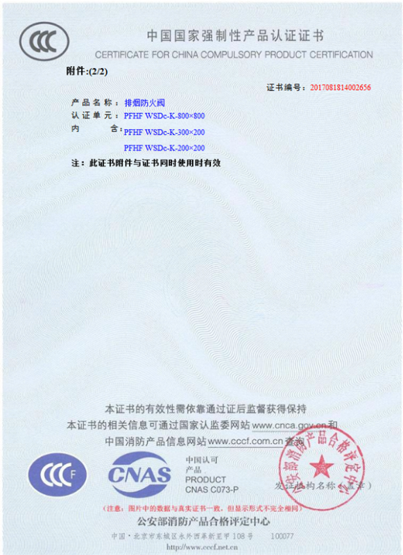 產(chǎn)品全通過國家消防檢測(cè)中心檢測(cè),獲得CCC證書